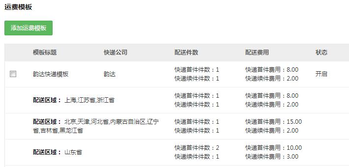 运费模板